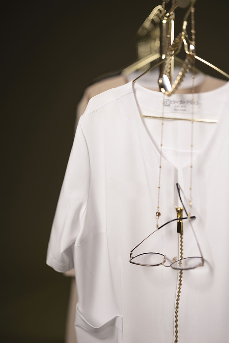 Uniform medyczno-kosmetyczny Carmen to kobiecy, stylowy i profesjonalny wybór do pracy czy spotkań z Klientami. Fason taliowany idealnie podkreśli Twoją sylwetkę, a rękawy długości 7/8 wysmuklają rękę. Materiał się nie gniecie nawet po całym dniu pracy oraz nie pyli przy kontakcie z tworzywami około medycznymi.